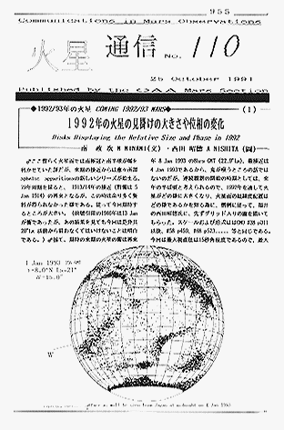 LtEには、渡米中の浅田正氏からのお便りをはじめとして、Roy CERRETA氏(Itary)から寄せられた火星図の紹介。日岐敏明氏からのお便りと同氏使用の望遠鏡の写真と火星スケッチの紹介。Marc A GC9LINAS氏(Canada)のお便りには、同封された"ASTRONOMIE QUEBEC"誌についての記事、編集部に同氏が所属する。Don PARKER氏からは、同封された"Dust Clouds on Mars in 1990, An International Event"の紹介。それぞれに南氏の解説が付いている。