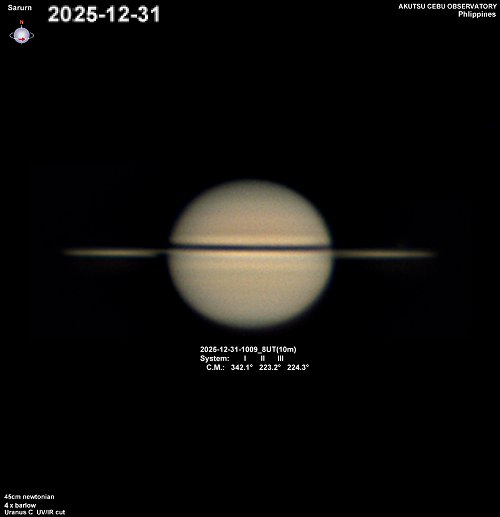 夕方透明度が良かったので西空の土星を撮像。開きつつある環が良く分かる。衛星Rheaとその影が見えています。