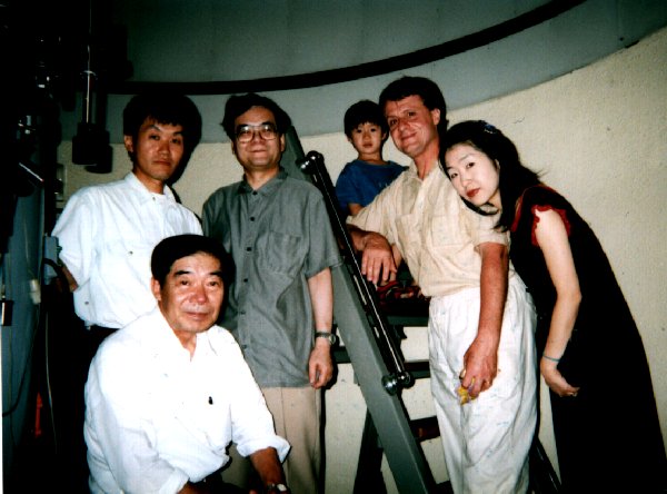 食事の後、天文臺へみんなで登った。もし晴れていれば、天文族だけで夜通し土星木星を觀測し、Ns氏はNikonD1も試用する豫定であったが、殘念ながら空の状態は悪く、ドームの中での討議のみになった。偶々Ns氏がカセグレンタイプの望遠鏡に興味を持っていたので、クアッラ氏はZen社の30cmマクストフ・グレゴリアンに就いて話をした。スパイダーがないこと、副鏡が45mmと小さいことなどで、「屈折なみのクリアーな像」ということの上に、筒全長も約1m程度で、扱い易いようである。未だ第一號のようで、實績は判らないが、クアッラ氏は太鼓判を押していた。値段も、Ns氏に言わせれば安いということであるが、日本への運搬は容易ではなさそうであった。尚、p2813のBaaderの太陽フィルターの話題もこのとき出た話で、彼が日本へ輸入したところだった。