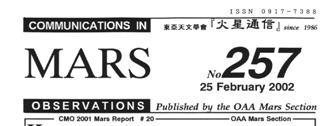 2001 (310゚Ls) to 15 February 2002 (327゚Ls) based on the reports from ISHADOH, KUMAMORI, MELILLO (USA),