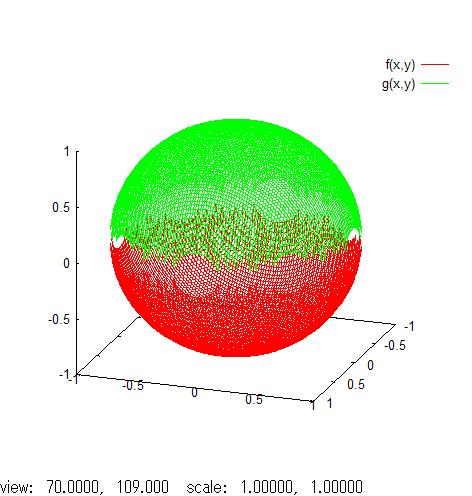 gnuplot> g(x,y)=sqrt(1-x*x-y*y)